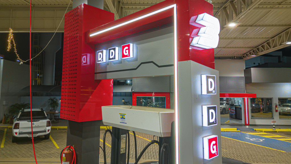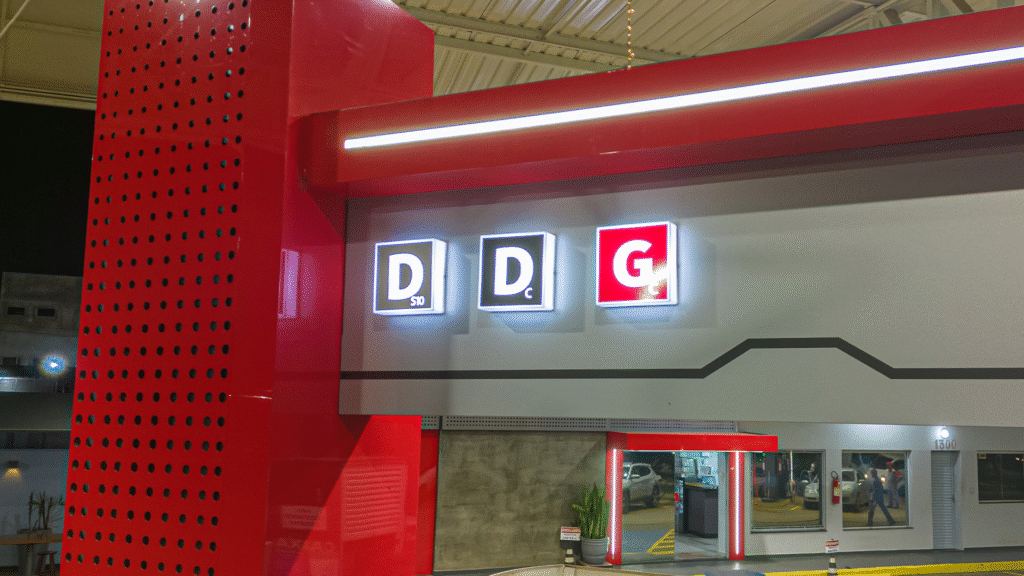 Realizamos o projeto completo de fachada do Posto Deck, incluindo o desenvolvimento e execução de totem, fachadas e outros elementos estruturais. Com foco em alta qualidade e design inovador, o trabalho envolveu a criação de um totem imponente, visível de longe, que se destaca pela iluminação estratégica e pelo logotipo em grande escala, reforçando a presença da marca. A fachada foi projetada para proporcionar um visual moderno e elegante, com materiais de excelência que garantem durabilidade e sofisticação. Cada detalhe foi cuidadosamente planejado para criar uma experiência visual impactante e acolhedora, oferecendo não só um ambiente funcional e prático, mas também uma imagem forte que comunica qualidade e confiança aos clientes.